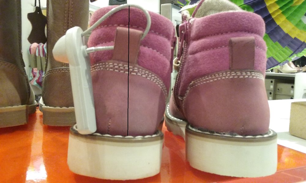 Další co určitě sledujte je ušití boty. Šev na opatku musí být kolmý na zem. Zdali si dáte práci objevíte v odchodě i boty se švem do oblouku. Více často naleznete šev šikmo. Šikmé ušití boty bude v důsledku opět navádět do X nejen hlezno ale i koleno a kyčel do vnitřní rotace. To jsou polohy pro dolní končetiny nechtěné nefyziologické. Šev opatku, jeho tvar musí být kolmý.